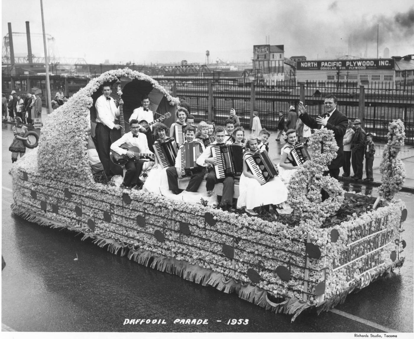In its heyday in the 1950s, Tacoma’s Honolulu Conservatory franchise served hundreds of students each year, with ensembles performing in regular concerts and for public events. The school also sponsored a float in the Daffodil Parade for several years. It is clear from the number of professional photographs ordered by the Pipers from Richards Studio that they were not only proud of the work they were doing, but also skilled promoters of their business.