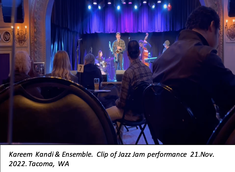 On an especially wet and moody, quintessential Tacoma evening in November 2022, I fell in love in more ways than one. I was enrolled in a class at the University of Washington Tacoma titled Tacoma Music History. Ever the extra-credit enthusiast, I found myself climbing the Spanish Steps of the historic, recently renovated McMenamin’s Elks Temple to attend a free jazz show put on by local jazz musician and educator, Kareem Kandi. I had selected this show for my extra credit event as I had recently learned about Tacoma’s long and storied history of jazz and, particularly about the local favorite and funny man, Red Kelly. As I enjoyed the sultry tones of Kareem Kandi’s World Orchestra playing their rendition of Antonio Carlos Jobim’s Wave and a stellar vocal performance of Etta James’ version of Stormy Monday, it was easy to understand the allure of jazz clubs past, like Kelly’s.