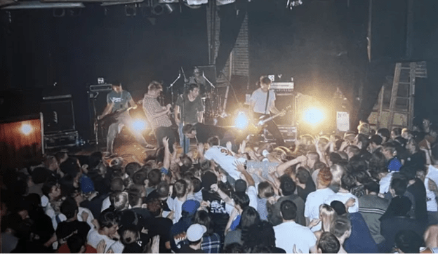 Botch’s sound could be described as “dark, heavy, and chaotic” (Tacoma News Tribune, 1999). Their music falls under the categories of metalcore and math rock. Botch’s style was characterized by atypical rhythm structures and odd time signatures, which are attributes of math rock. The band was known for their heavy guitar riffs, complex harmonies, and Verellen’s rough vocals. Regan Hagar, a member of Brad and Satchel states “You can’t go to a Botch show and come away unchanged,” It was common for Botch to thrash around frantically onstage during their prime, yet they still managed to nail all the minute intricacies with ease. Their shows were described as exhilarating and intense. On October 27th, 1999, Botch played their first show promoting We Are the Romans at the Rkcndy all-ages venue before its closing and renovation into a hotel. Despite Rkcndy being demolished, Botch’s performance is still remembered and talked about to this day. The Botch members always applied pressure and avoided the mainstream, whether this was through their musical approach or presentation. Their overall vibe was often compared to straight-edge bands. Straight Edge is a punk subculture characterized by abstaining from drugs and alcohol. When asked about their influences Brian states, “We thought straight edge was cool at first because we didn’t like drunken frat boys but when the youth-crew stuff started becoming more popular and bands like Earth Crisis started taking over the straight-edge scene, we thought, ‘Ugh, these are the frat boys,” At the time, people viewed the band as too complicated.
