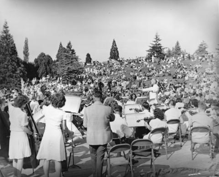 On July 28, 1946, the Point Defiance Park natural amphitheater in Tacoma, Washington, resounded with patriotic songs, jazz, and orchestra. The event was the second USO Music Festival; it attracted more than 7,000 people for a community-oriented celebration of unity and hope for the postwar era. Though the event is a largely forgotten moment in national history, as it stands, it represents one of Tacoma’s most musically varied and symbolically significant collections of concerts and musical performances.